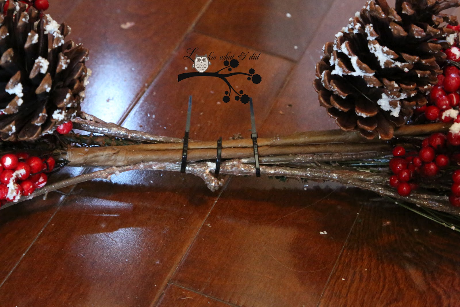 I took the same bow from my Christmas wreath last year and simply adhered it to the middle of the branches with floral wire.....